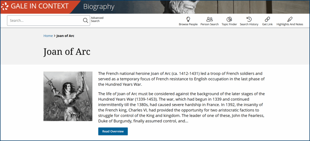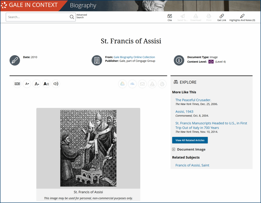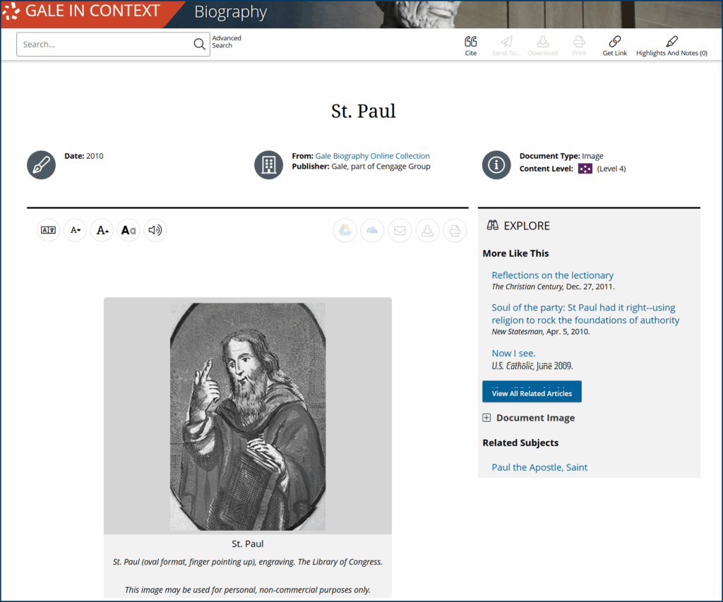 To explore the lives of these revered figures, educators can turn to Gale In Context: Biography’s collection of more than 500,000 biographies for accurate, classroom-ready information. Each biography includes a curated set of related materials that enrich the subject’s story—primary texts, historical commentary, media coverage, and multimedia sources.