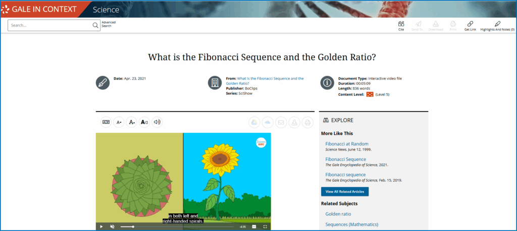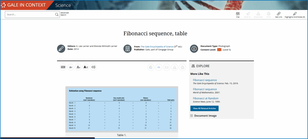Educators can spark curiosity about this intriguing sequence and support students in pursuing deeper inquiry with Gale In Context: Science. This richly resourced database provides biographies, scholarly articles, and multimedia to illuminate Fibonacci’s life (c. 1170–1250) and the impact of his ideas across design, mathematics, and science.