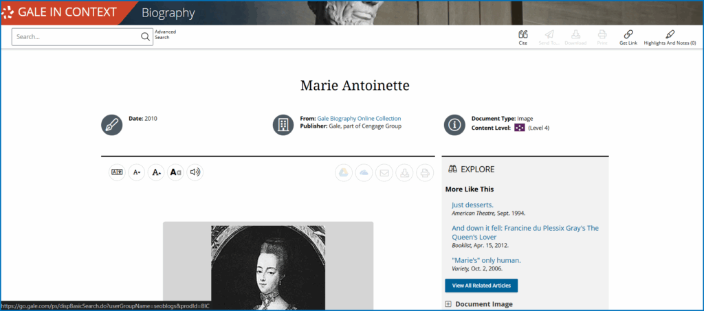 Few royals have been subject to such scandal and gossip, or managed to sustain public fascination quite like Antoinette. With help from Gale In Context: Biography, invite your high school students to sharpen their research skills to separate fact from fiction by exploring a wealth of articles, biographies, images, and audio files that bring Antoinette’s story to life.