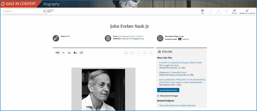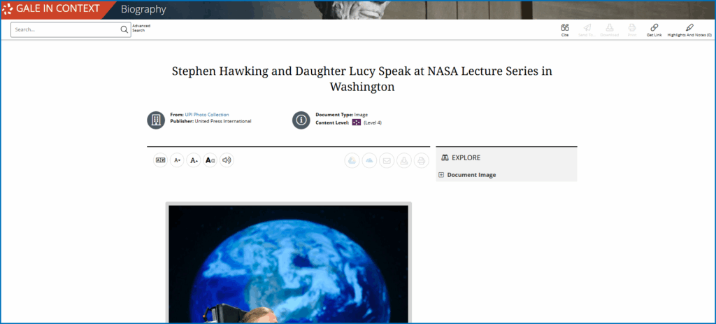 Because no single format can capture a life in full, Gale In Context: Biography brings together video interviews, audio recordings, primary documents, and full-text articles to show each figure from multiple perspectives.