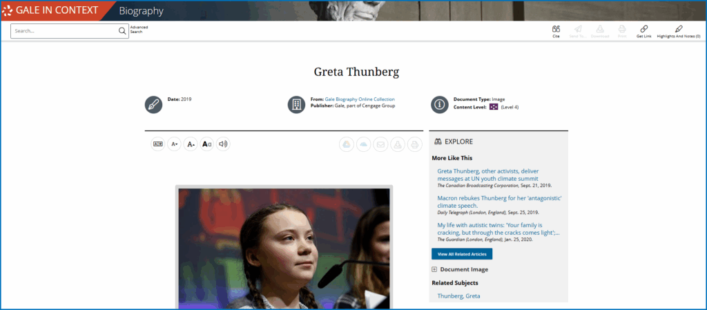 Gale In Context: Biography combines trustworthy materials covering diverse life stories with accessibility tools that adapt to different learning styles. Features like text-to-speech, translation, and reading-level options ensure that all students can engage with the content, creating a classroom where inclusion is built into learning itself.