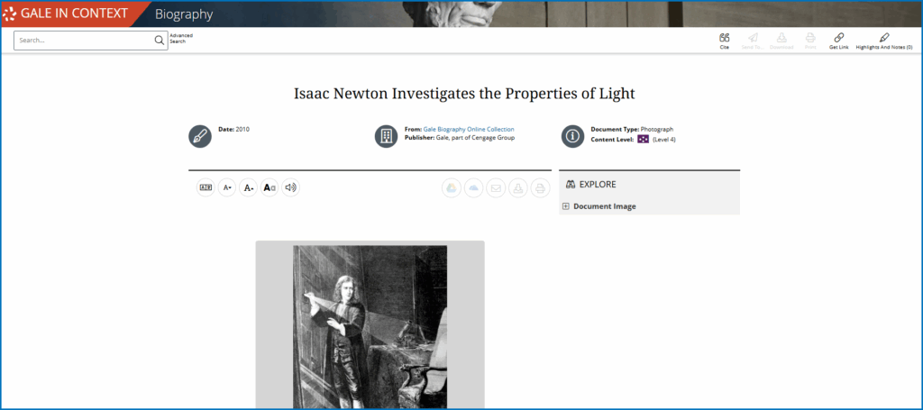 We’ve only waded ankle-deep into the “great ocean of truth” that is Newton’s life, his scientific work, and the world of thinkers who shaped it. Gale In Context: Biography and Gale In Context: Science invite students deeper, pairing the story of his life with his insistence on evidence-based reasoning that continues to anchor modern scientific practice.