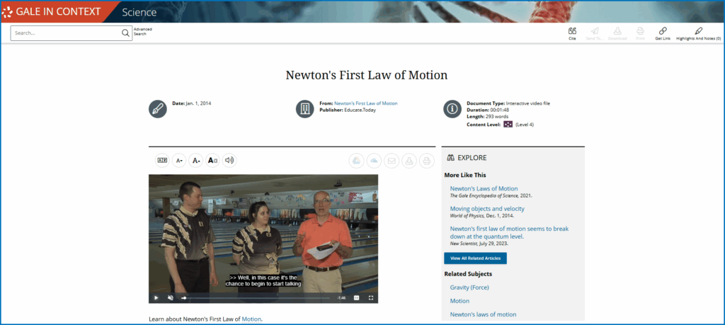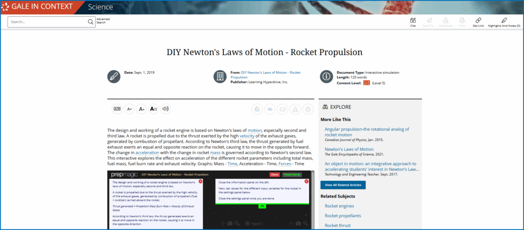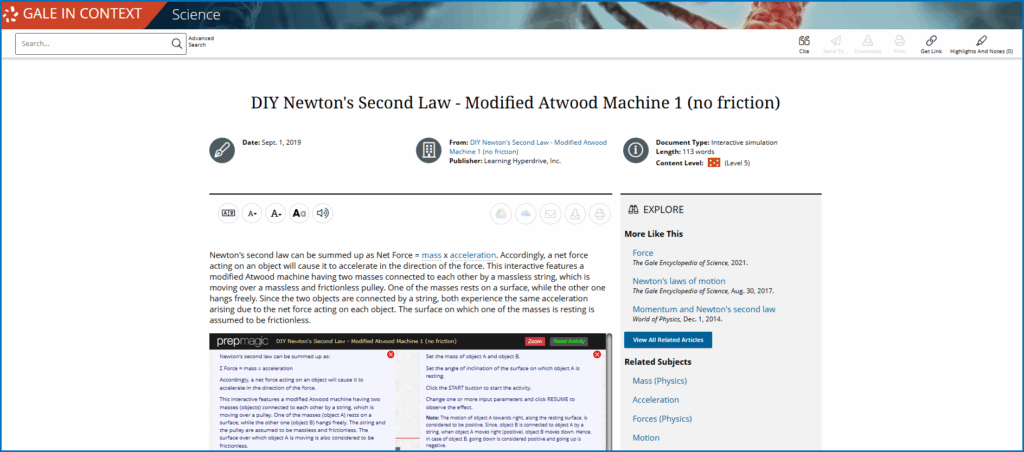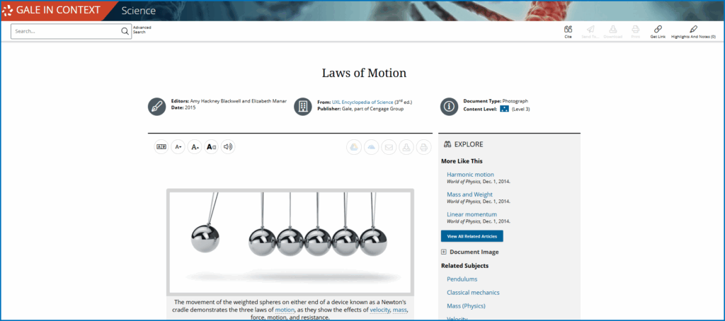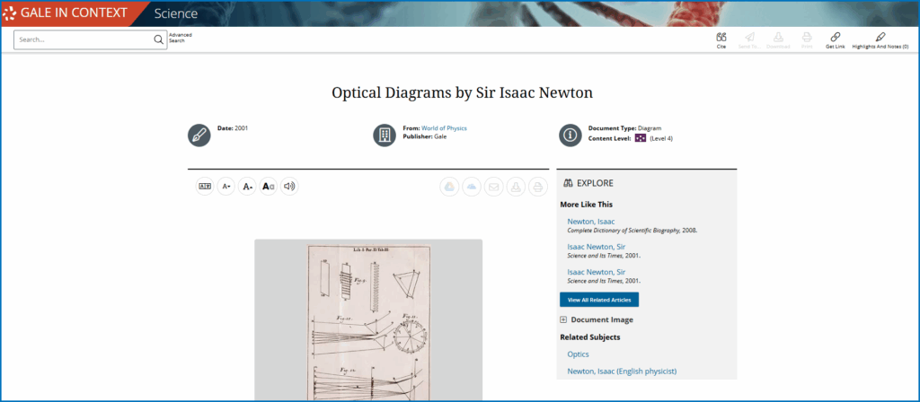 Gale In Context: Science invites students to interact with Newton’s discoveries and explore how those principles continue to support modern scientific practices.