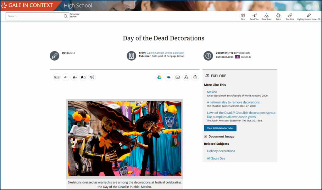 Getting students excited about Halloween is the easy part. Helping them think critically about it? That’s where we can help With Gale In Context: High School, students can trace modern traditions to their historical roots, explore how belief systems adapt over time, and examine how different cultures approach themes like death and remembrance. Whether they’re researching Samhain, souling, or sugar skulls, the platform supports deeper inquiry with trusted, curriculum-ready content.